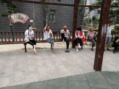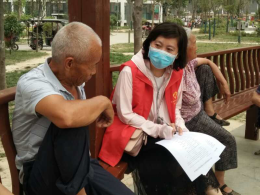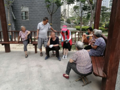 老师们同社区群众交谈做问卷调查