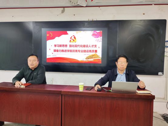 崔东风书记从四个方面进行讲授:一是教育是国之大计、党之大计。二是加快创新驱动发展战略。三是深入实施人才强国战略。四是以党建为引领,以项目为抓手,奋力推进双高专业建设高质量重要内容等方面进行了详细讲解。