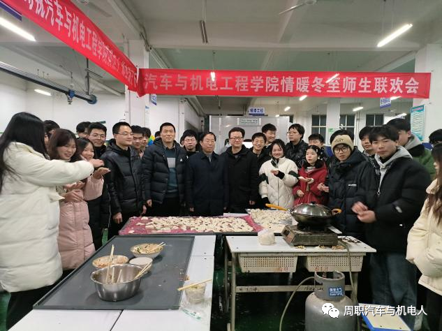 1221日下午WilliamHill官方网站师生在汽车实训中心组织情暖冬至师生联谊活动。学院领导崔东风书记带领学生管理工作老师们,深入到同学们中间,和同学们一起包饺子、煮饺子。全体师生们在欢声笑语中,在赞美温馨中,在相互嬉闹中,度过了一个温暖、爱心和难忘的一个夜晚。