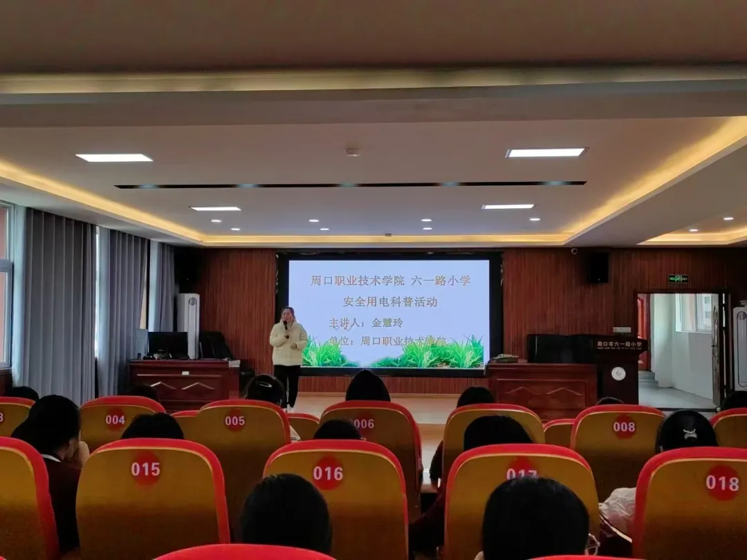 金慧玲老师为学生们进行了安全用电常识科普,普及了常见的安全用电知识,学习了触电急救方法,认识常见安全警示标志,并和现场学生进行了互动,学生们纷纷举手发表见解。