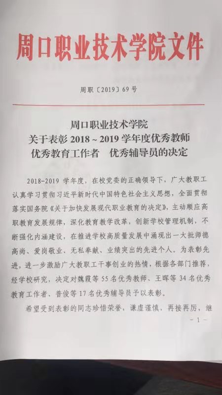 williamhill中国官方网站关于表彰2018-2019学年优秀教师、优秀教育工作者、优秀辅导员的决定