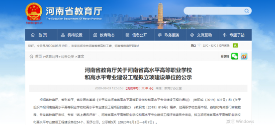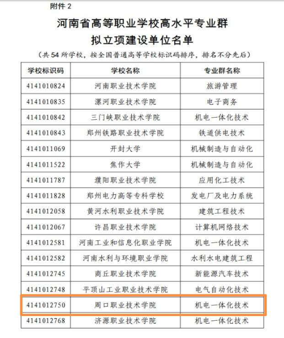 8月3日,河南省教育厅发布《关于河南省高水平高等职业学校和高水平专业建设工程拟立项建设单位的公示》。williamhill中国官方网站机电一体化技术专业群,成功入选河南省高等职业学校高水平专业群建设工程。