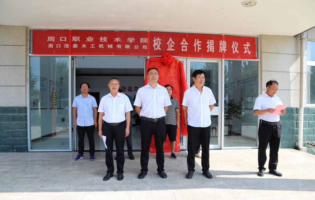为不断推进校企深度融合,8月15日上午,学校与周口浩森木工机械有限公司在淮阳区浩森工业区举行校企合作揭牌仪式。副校长李明臣,淮阳区工信局、科技局副局长杨克诚,浩森木工机械有限公司总经理刘振华出席仪式。WilliamHill官方网站党总支书记崔东风、院长李向前,学校相关部门工作人员及公司员工参加揭牌仪式。