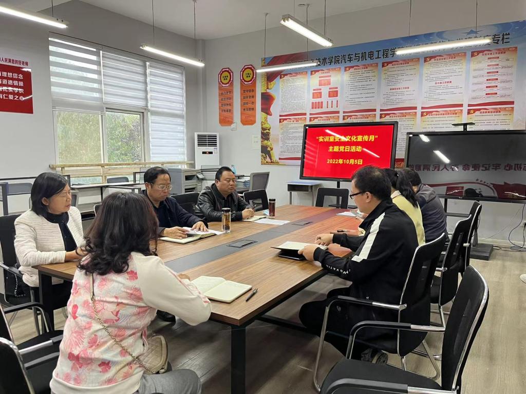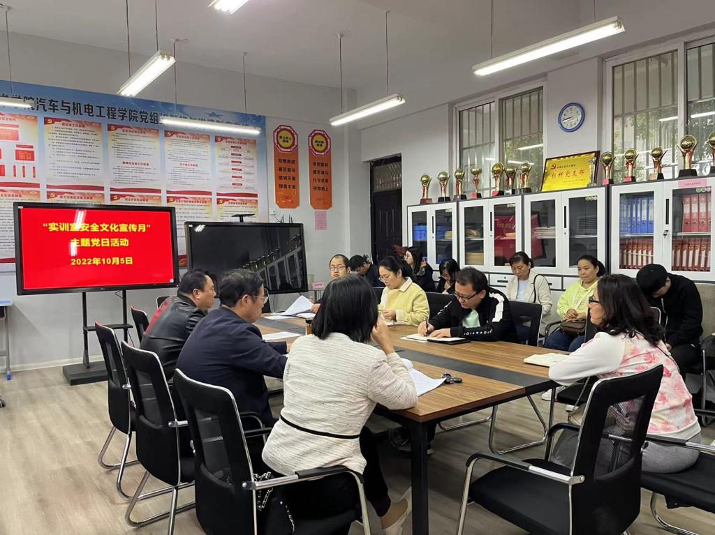 为贯彻落实习近平总书记关于安全生产的重要论述,加强我院实训室安全管理工作,营造和谐稳定的学习环境,10月5日上午,在党员活动室举行了“实训室安全文化宣传月”活动,崔东风书记、李向前院长、齐俊平副院长、实训中心主任、各教研室主任及相关教师参加。