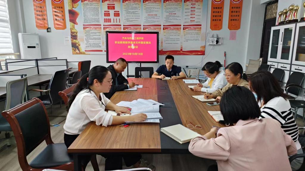 为深入贯彻党的二十大精神,贯彻落实新修订的职业教育法,强化教学规范组织实施和管理,保证人才培养规格和质量,根据教育部《关于开展职业教育国家教学基本文件落实情况自查工作的通知》(教职成司函〔2023〕25号)要求和河南省教育厅办公室《关于开展职业教育教学基本文件落实情况自查及教学质量抽查工作的通知(教职成函〔2023〕715号)结合我实际2023年1016WilliamHill官网在党员活动室召开自查会议,教学副院长田伟华、学管办主任丁兰花、教研室主任实训中心主任及骨干教师参加会议。
