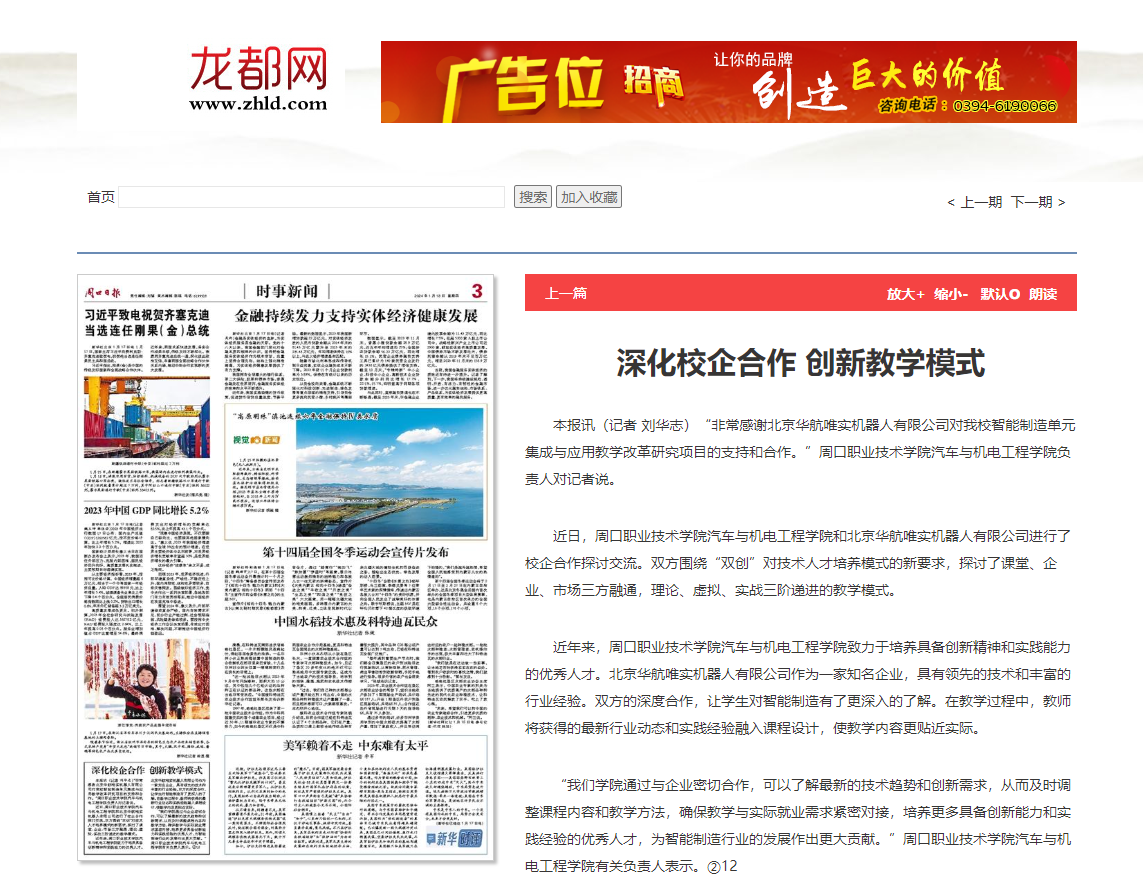 “非常感谢北京华航唯实机器人有限公司对WilliamHill官网智能制造单元集成与应用教学改革研究项目的支持和合作。”WilliamHill官方网站负责人对记者说。