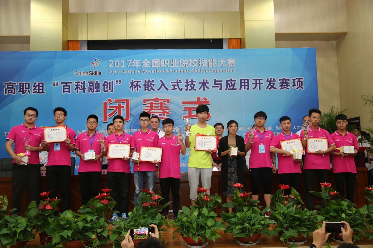 2017年全国职业技能大赛-嵌入式技术与应用开发项目获奖学生上台领奖