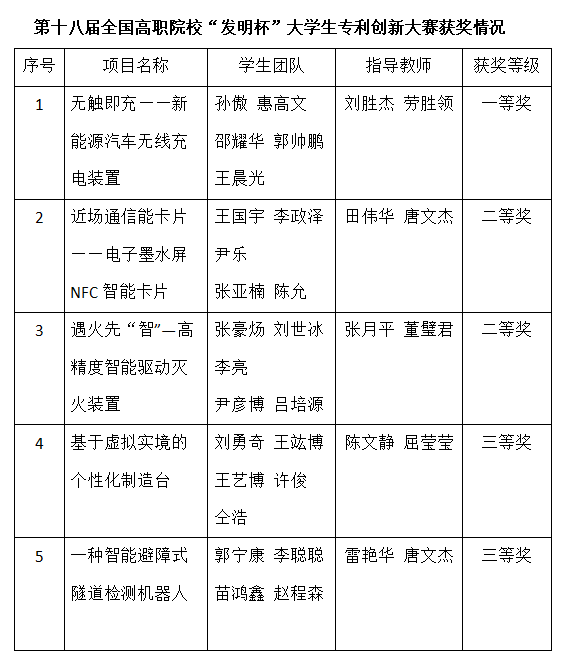 近日,中国发明协会、山东省教育厅、山东省人力资源和社保障厅发布了第十八届全国高职院校“发明杯”大学生专利创新大赛获奖结果的通知,WilliamHill官网再创佳绩,获得一等奖1项,二等奖2项,三等奖2项。
