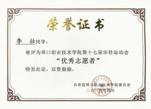 2024年williamhill中国官方网站第十七届田径运动会优秀志愿者