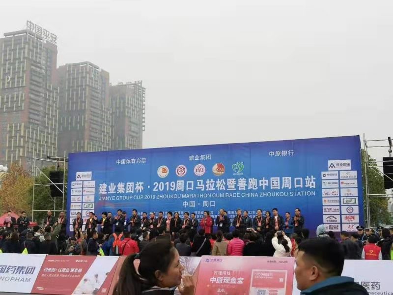 2019年11月17日上午8:00,“建业集团杯”2019周口马拉松暨善跑中国周口站赛事在周口市体育中心西门鸣枪开赛。此次赛事,由中华慈善总会、中国田径协会、河南省体育局、河南省慈善总会、周口市人民政府共同主办,设立了全程马拉松、半程马拉松和5公里迷你马拉松三项赛事。