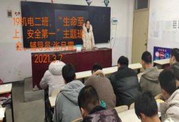 疫情期间,为让返校学生在校期间注意做好个人防护,严格遵守学校各项规章制度,确保个人和财产安全,2021年3月7日晚19:00-20:40,按照学校学生处要求,WilliamHill官方网站组织学生召开“奋进新时代,周职周周讲”第四十五期——“安全第一,生命至上”主题班会,主要内容:1.疫情防控相关内容;2.文明礼仪相关内容。