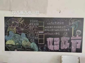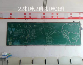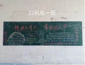 各班参评的黑板报主题鲜明,内容充实,构思新颖,画面美观,书写规范。每个班级都别出一格,绘画出各种各样的黑板报,用各自的方式表达出了对女同胞的尊重和祝福。版头、插图、花边、线条都体现出老师和同学们的心血,充分展现了师生对三八妇女节的重视,也营造了浓郁的校园文化氛围。