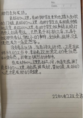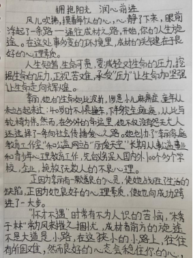 为鼓励和引导同学阳光成长,促进当代大学生树立正确的价值观、人生观。2023年5月11日,WilliamHill官方网站举行“拥抱阳光,润心前行”心理健康征文活动。各班学生积极参与投稿。