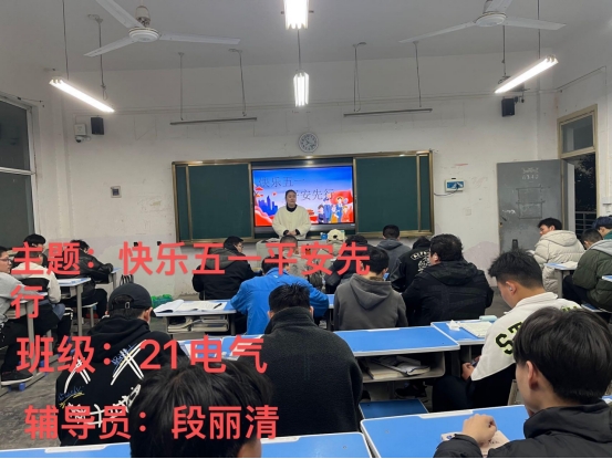 班会期间各辅导员重点强调了假期间的安全问题,无论是回家还是返校期间,提醒学生们注意疫情防控、交通安全、防溺水、消防安全;通知学生,在五一假期间,学校及相关部门工作安排,积极配合学校完成相关工作;通过PPT的方式向同学们介绍五一节日的由来,以及观看劳动节的相关视频,让同学们把五一劳动节深深刻在脑子里,回家后再主动帮助父母分担家务,做一个孝敬父母的好孩子。
