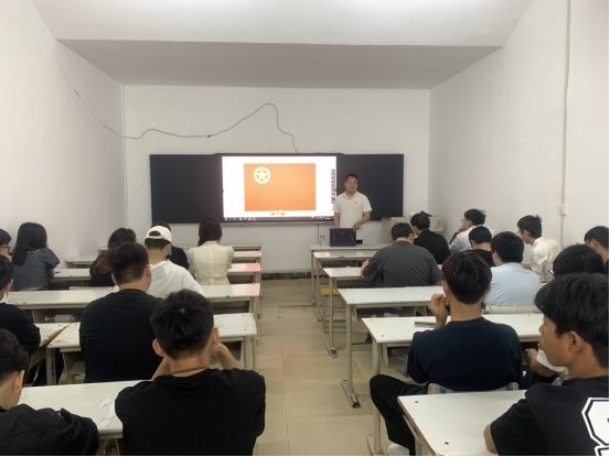 班会期间各班级辅导员讲解共青团的创建和“团旗、团徽、团歌、团员证”的产生及意义;学习过程中,同学们认真学习,并记录笔记。