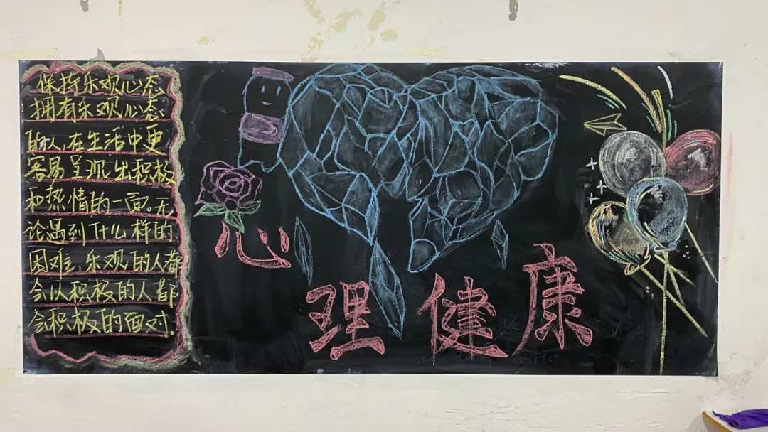 这些黑板报不仅色彩斑斓、图案精美,更重要的是内容丰富且极具教育意义。有的板报介绍了心理健康的重要性,提醒同学们关注自身心理状态;有的则列举了常见心理问题的应对方法,为大家提供了实用的建议;还有的通过温馨的话语传递出关爱与鼓励,营造出积极向上的氛围。