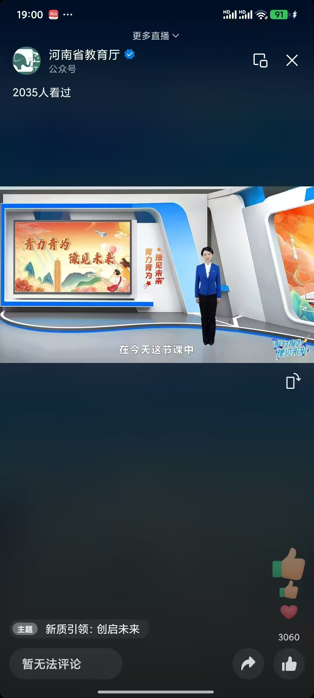 为提升学生文化素养、激发创新意识与追梦热情。1月21日至1月23日,WilliamHill官方网站组织全体师生开展为期三天的“青力青为 豫见未来”主题线上直播观看活动。此次直播活动由河南省教育厅主办,围绕非遗对话、新质引领、青年追梦三个主题展开。