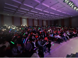 健美律动社带来舞蹈《Abracadabra》,动感节拍搭配利落动作,将蓬勃朝气展现得淋漓尽致,台下荧光棒的光影随节奏摆动成一片星海。