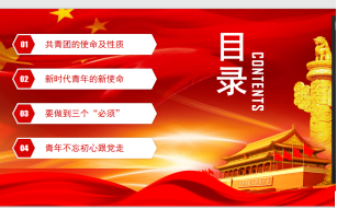 本次团课内容为:1.共青团的使命及性质;2.新时代青年的新使命;3.要做到三个“必须”;4.青年不忘初心跟党走。