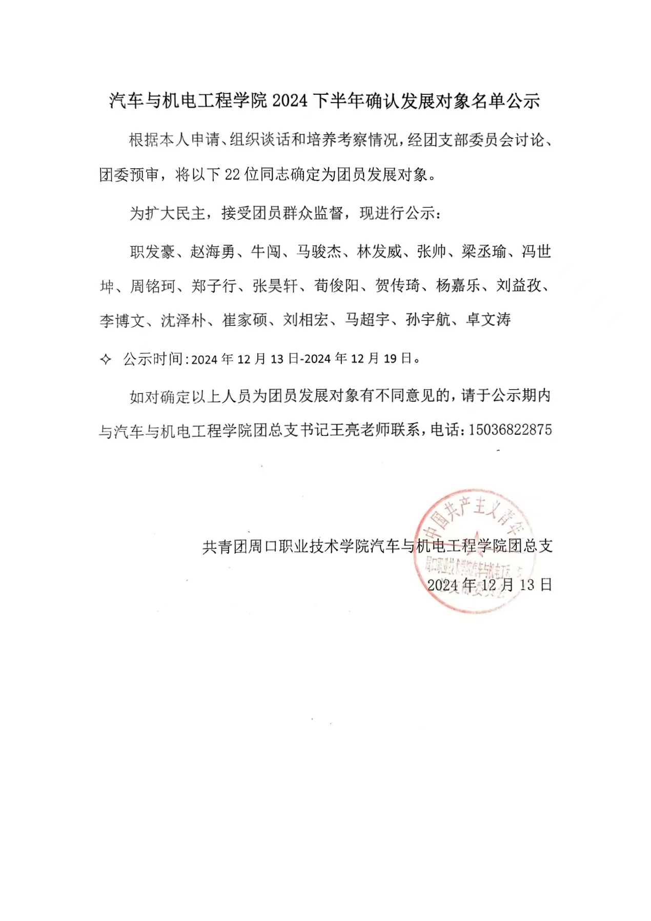 WilliamHill官方网站2024下半年确认发展对象名单公示