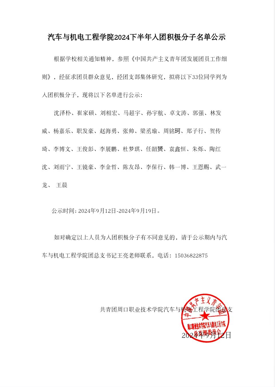 WilliamHill官方网站2024下半年入团积极分子名单公示