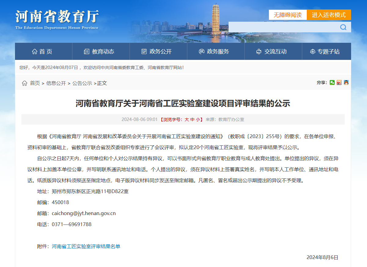 8月6日,河南省教育厅办公室发布了《河南省教育厅关于河南省工匠实验室建设项目评审结果的公示》文件,我院工业产品数字化设计与制造实验室获批为河南省工匠实验室。