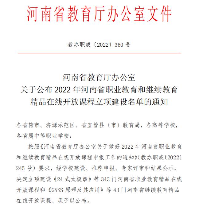 近日,河南省教育厅公布了 2022年河南省职业教育和继续教育精品在线开放课程立项建设名单,williamhill中国官方网站5门课程获批立项建设,WilliamHill官网张昭晗老师团队的《智能制造单元集成调试与应用》课程获批。近年来,WilliamHill官网持续深化“三教”改革,整合优质教学资源,加强精品在线开放课程建设,切实提高教育教学质量,目前已立项建设省级精品在线开放课程 2门。