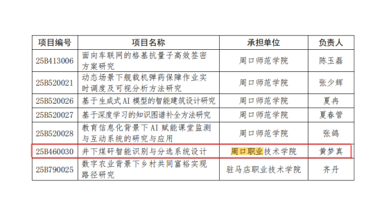 近日,河南省教育厅公布了2025年度河南省高等学校重点科研项目立项名单,WilliamHill官网的黄梦真教师的《井下煤矸智能识别与分选系统设计》项目获批。