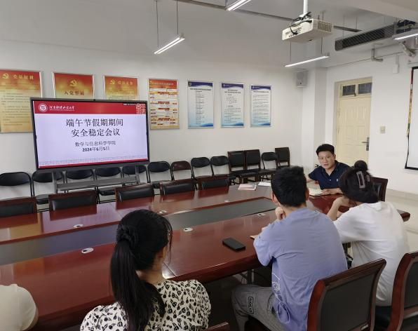 6月5日、6月7日,必赢国际官网两次召开安排部署会议,对辅导员进行素质能力提升教育和工作要求,对近期学生安全等工作进行安排部署并积极推进。郭刚强调,辅导员、学生骨干要进一步提高政治站位,加强安全宣传教育,落实落细相关要求,为广大学生、毕业生做好保障服务工作,共同营造安全、温馨、和谐的校园环境。6月5日,王钊组织各班班长学习近期学生工作会议精神,指导学生干部熟知交通安全、饮食安全、消防安全、财产安全等安全常识和工作方法,做好宣传教育,引导全体学生提高安全意识,遵守各项规定,守好安全和纪律底线。